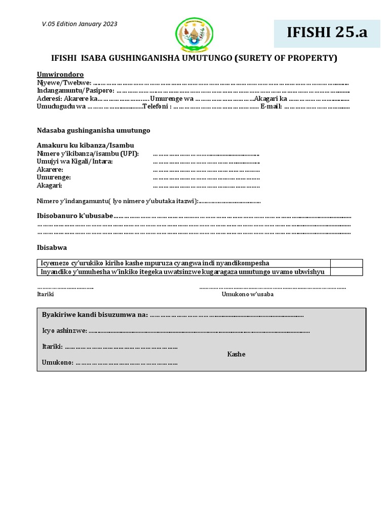 (A) Application Form For Restriction Rights Surety of Property Kinya